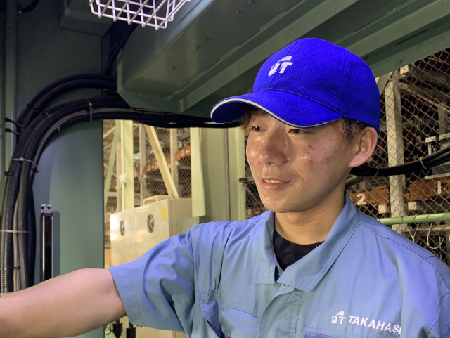 工業高校とはいえ電気科でしたので、プレスのことは全くわからない状況からスタートしましたが、先輩方の親切な指導もあり、1年働いてプレスのことも理解出来てきました。何も知らない人でも、入社後は丁寧に教えてもらえるので、まったく心配はいりません。皆さんといっしょに、楽しい職場を作りたいと思います。